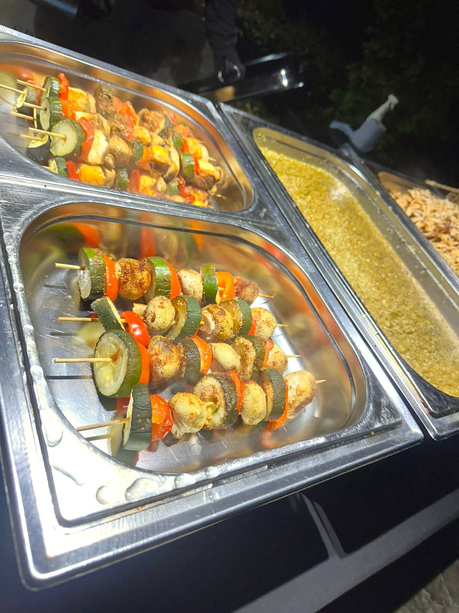 So of course it could only be the best for such a group! One hog roast, cooked in the traditional spit style and served with its own delicious golden crackling, our homemade sage and onion stuffing, fresh apple sauce, and paired with mixed salad, creamy slaw, gluten free rolls, and a choice of our vegan BBQ pulled jackfruit and our grilled veg and halloumi skewers for a vegan and veggie alternative. Our team paid plenty of attention to the group’s allergen and dietary requirements, too, ensuring that we had plenty of safe options for the vegetarians, nut allergies, and lactose intolerant guests.